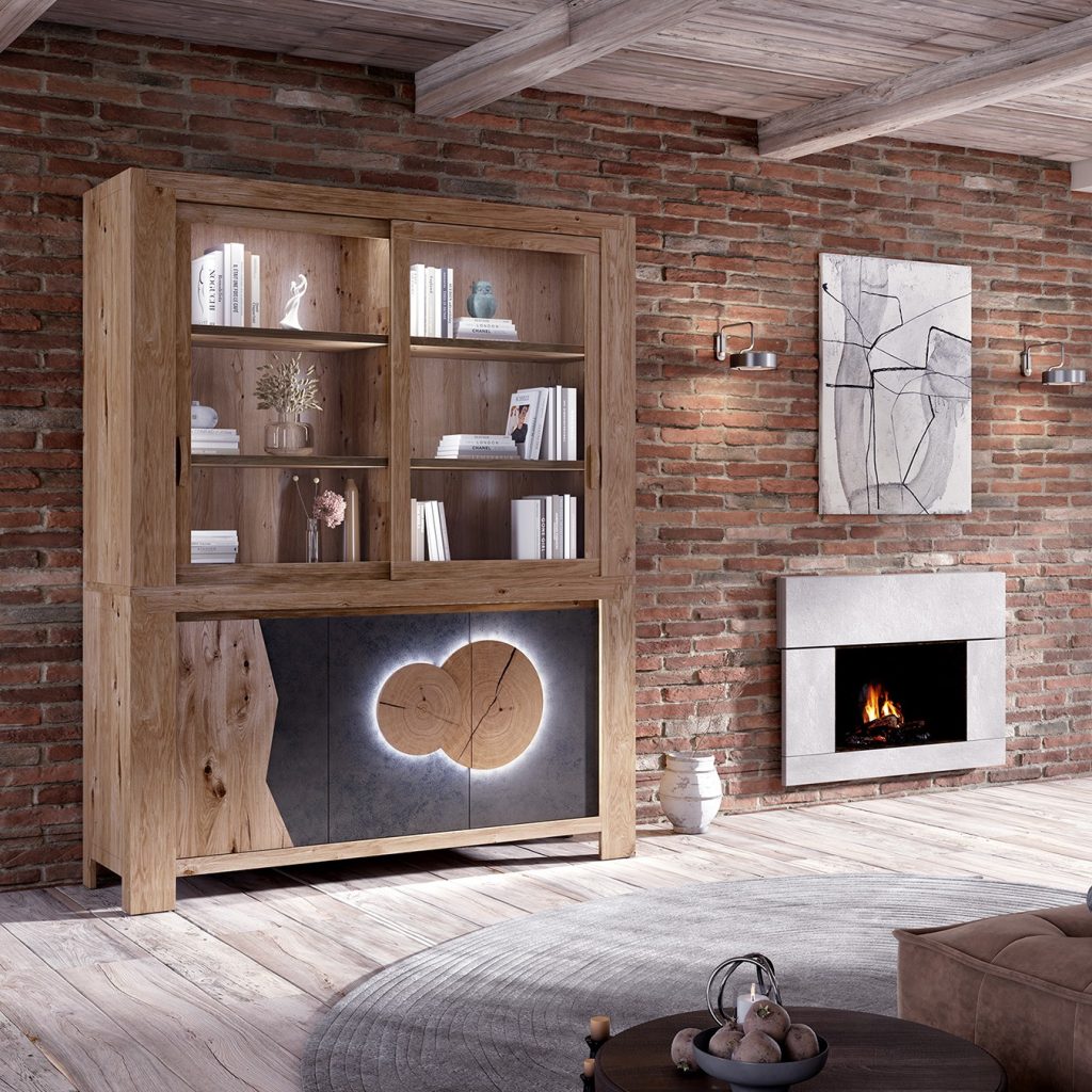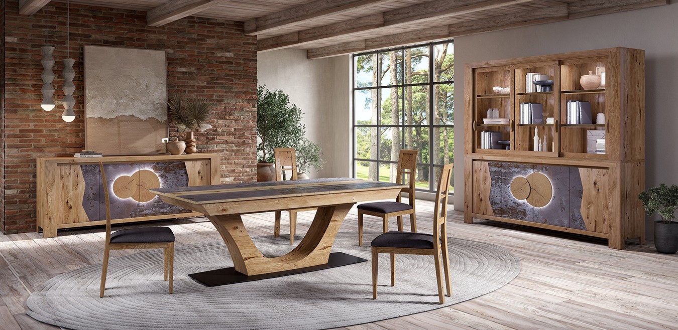 Table à manger + Enfilade + Vitrine de la collection FLEURI pour ajouter une touche rustique