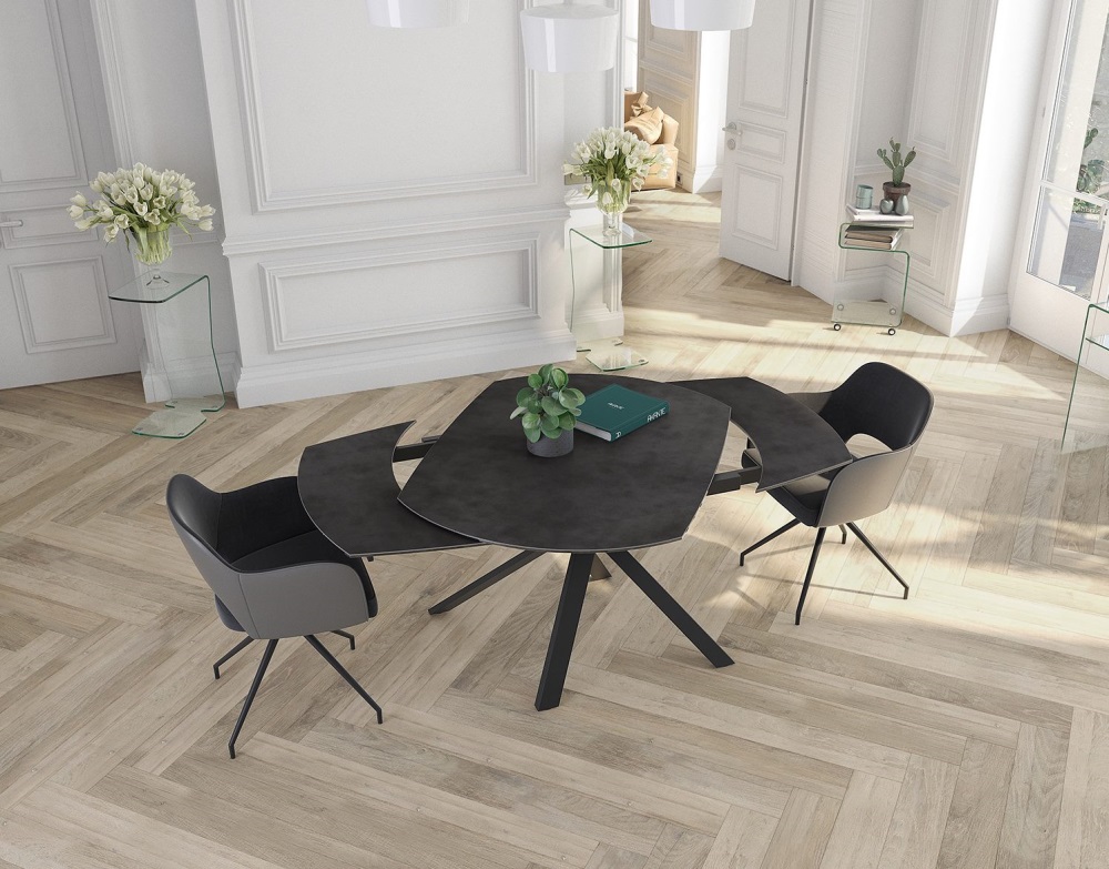 La table en céramique Nice à pied central est une table modulable, signe de la praticité.